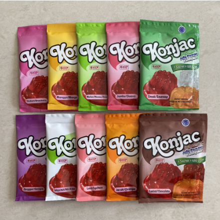 konjac adalah agar-agar instant dengan banyak pilihan rasa ,yang dibuat dengan rumput laut ,yang banyak mengandung serat untuk menghasilkan jelly kenyal,sehat dan nikmat