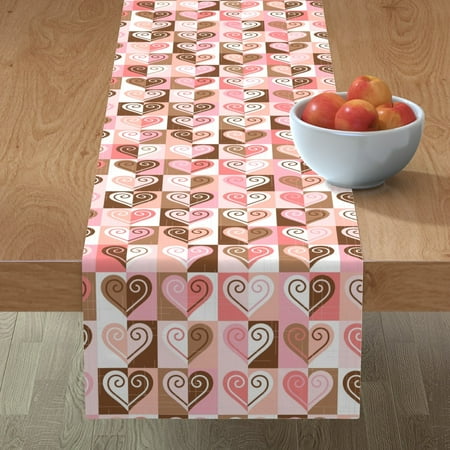 Cotton Sateen Table Runner 108 - Valentine Pink White Brown Geometric Peach Heart Print Custom Table Linens by Spoonflower
