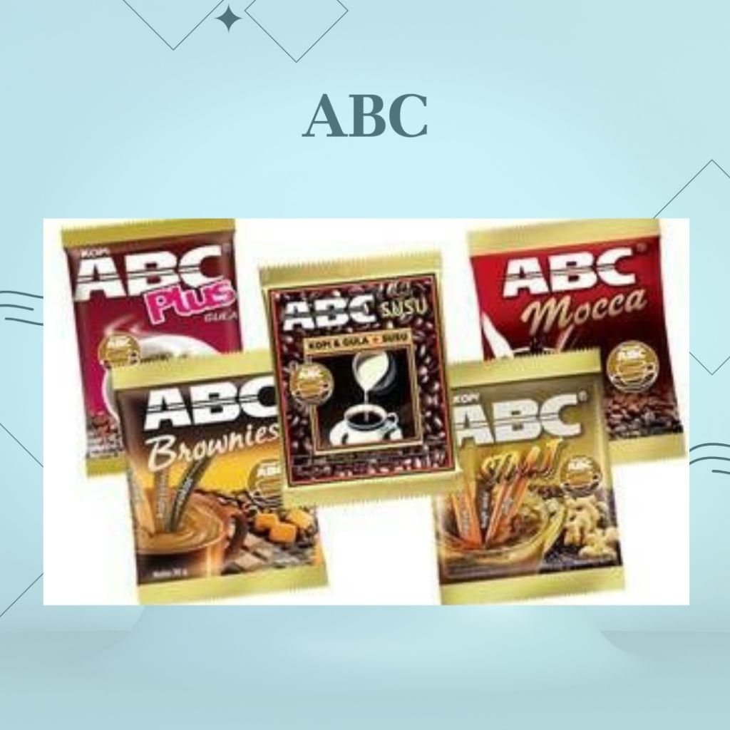 Kopi ABC sachet disajikan dalam kemasan individu yang praktis, siap untuk diseduh dengan air panas atau dingin, sesuai dengan variannya.