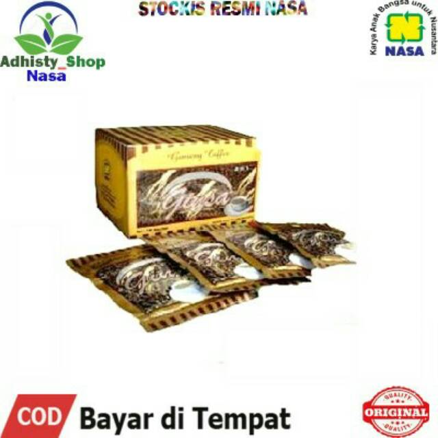GINSA Kopi Ginseng NASA merupakan hasil perpaduan sempurna antara kopi pilihan bermutu, ginseng, gula dan creamer nabati yang berkualitas dan bermanfaat bagi kesehatan. Aroma kopinya yang khas, menjadikannya jauh berbeda jika dibandingkan kopi pada umumnya. Dengan kandungan ginseng yang merupakan sumber energi, menjadikan kopi kesehatan ini sebagai pilihan minuman yang mempunyai multi manfaat: