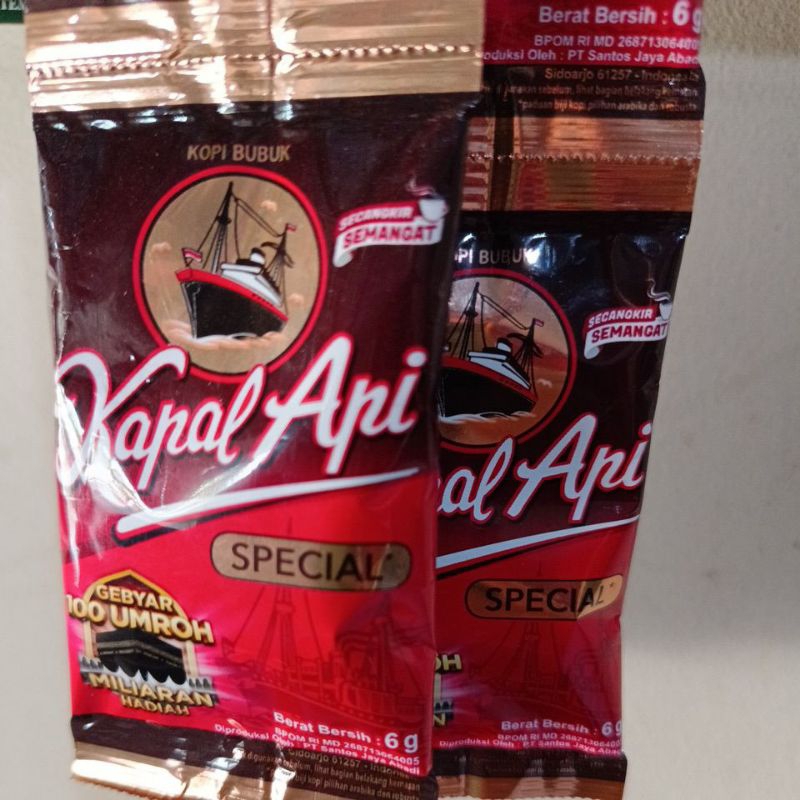 KOPI KAPAL API KOPI HITAM TANPA GULA SETENGAH RENCENG 6 gram