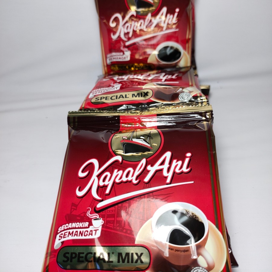 Kapal Api Special Mix Kopi Bubuk 1 renceng 10 sachet, kopi hitam bubuk instan yang terbuat dari biji kopi pilihan yang berkualitas dan diolah dengan menggunakan mesin yang berteknologi paling modern, serta menggunakan campuran gula murni sehingga menjadikannya paduan special dari kopi & gula ini memiliki aroma & cita rasa kopi yang harum dan jelas lebih enak. Dikemas praktis dan mudah untuk disajikan saat santai kapanpun. Awali hari Anda dengan secangkir semangat untuk indonesia bersama kopi kapal api. Kapal Api Special Mix ini dapat Anda nikmati saat bersantai atau di pagi hari karena memiliki beberapa kelebihan antara lain aroma kopi harum dan rasa yang nikmat, cocok dinikmati dengan air hangat, tidak membuat ketergantungan dan cocok dijadikan pelengkap saat sarapan pagi. Sajikan kopi dengan air mendidih untuk mendapatkan aroma kopi yang matang ke dalam cangkir 200ml