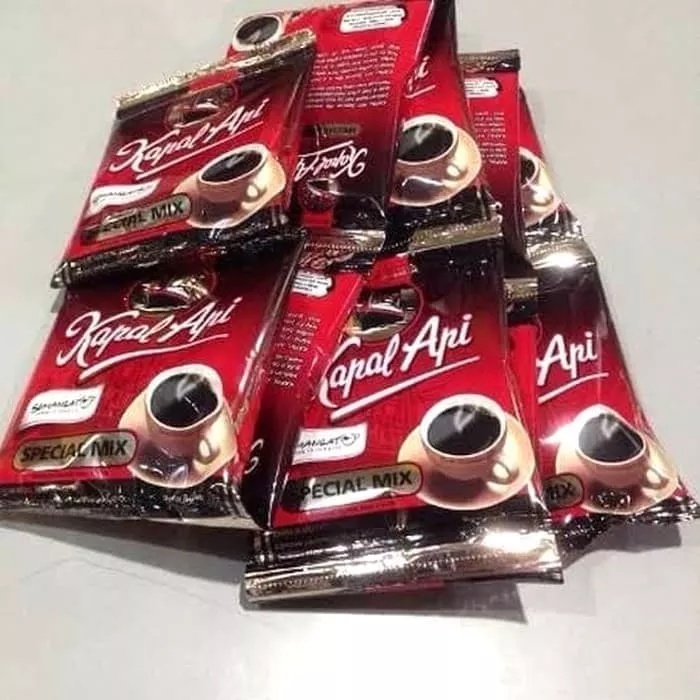 merupakan kopi bubuk yang terbuat dari biji kopi pilihan. Kapal api menghasilkan kopi yang harum dan lebih enak. Tuangkan satu sendok makan ke dalam cangkir, tambahkan gula secukupnya, kemudian seduh dengan air mendidih 200 ml dan kopi ini siap disajikan.