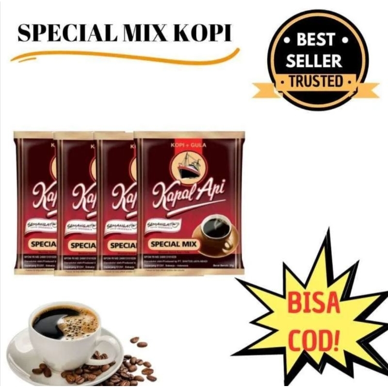 Kopi Kapal Api Special Mix Dibuat dari Biji kopi pilihan yang diolah dengan mesin yang paling modern dan campuran gula murni. Menjadikannya paduan spesial dari kopi dan gula. Kemasan Praktisnya, membuat kopi anda siap seduh dengan aroma kopi senikmat selera pilihan.
