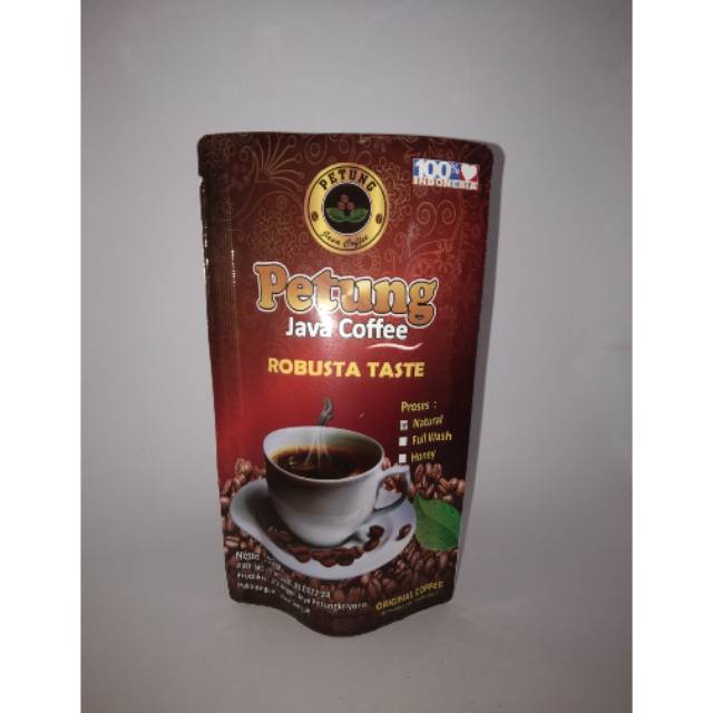 Petung Java Coffee. Bubuk kopi organik Robusta berasal dari tanaman kopi Robusta dataran tinggi Petungkriyono Kab.Pekalongan Jateng 1200-1500 dpl, daerah hutan tropis terbaik di Pulau Jawa. Dengan proses petik merah dan pengolahan yang moderen menjadikan rasa dan aroma kopi yang harum, nikmat cocok disajikan baik dengan air hangat maupun dingin. Melayani reseller seluruh Indonesia..
