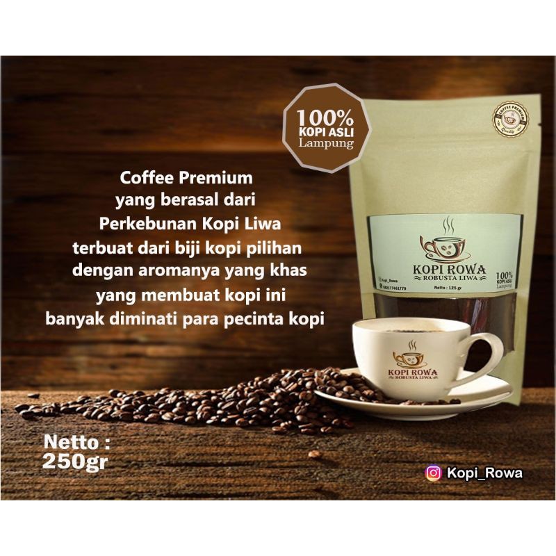 kopi tumbuh disekitaran gunung seminung lampung barat dan diolah dengan tradisional tanpa ada nya bahan campur,kopi rowa dengan citra rasa baik dan nyaman dikonsumsi bagi yang mempunyain asam lambung.