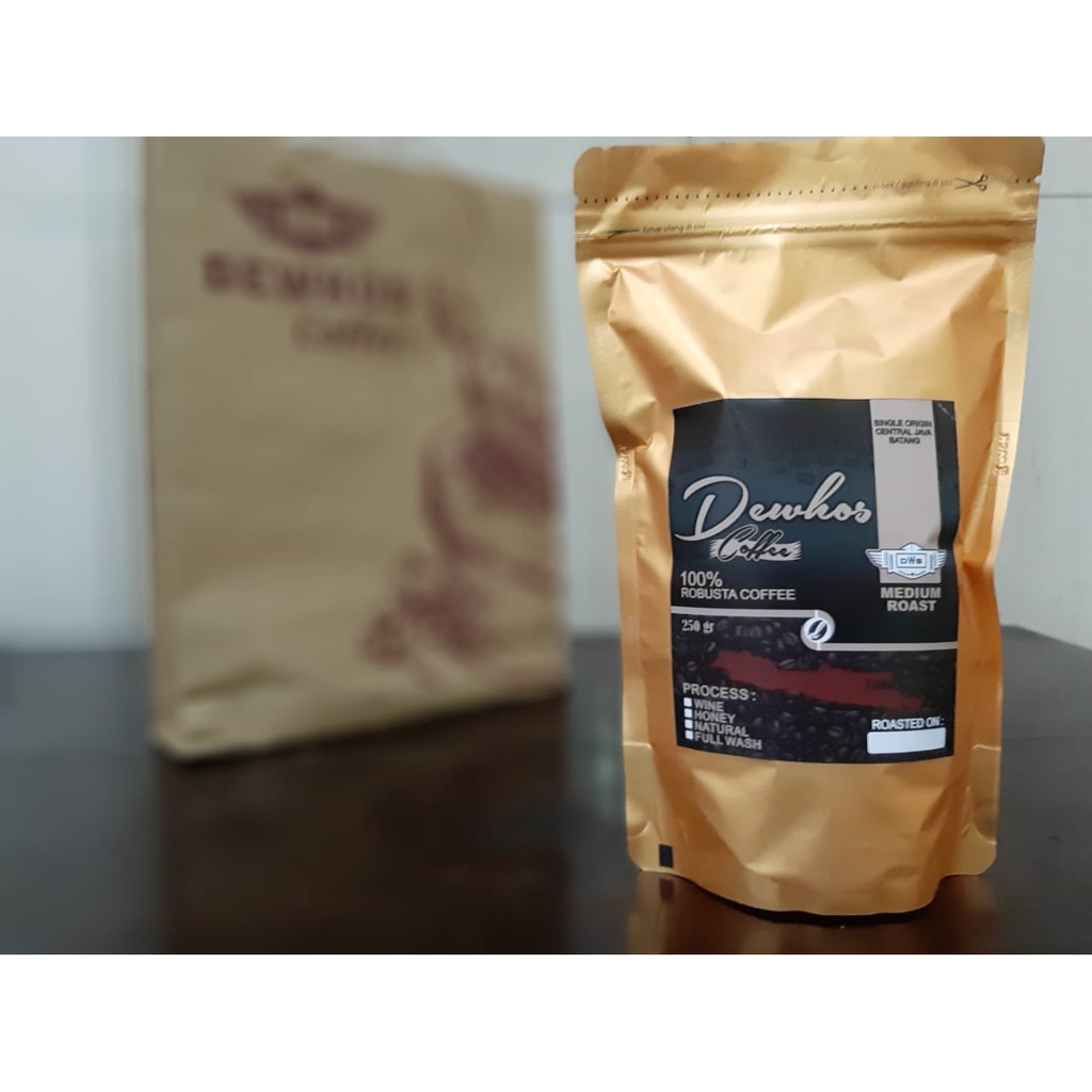 Kopi Robusta yang ditanam didaerah subur, tanpa pemberian pupuk kimia dan pestisida. Dipanen, disortir, dan diproses dengan hati-hati dan penuh ketelitian.