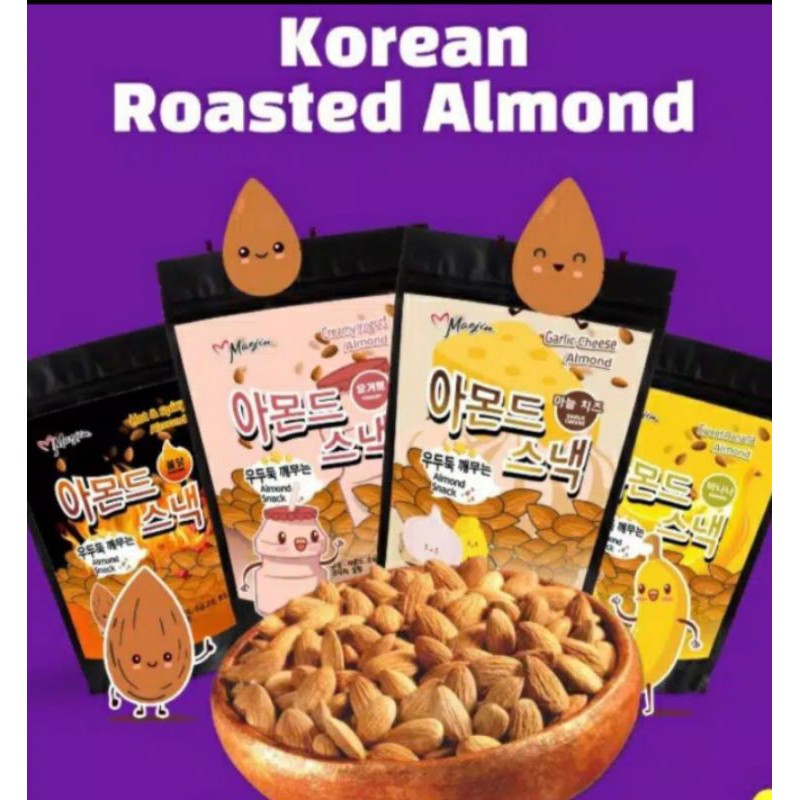 Korean roasted almond, makanan kekinian dari Korea, tersedia dalam 4 varian rasa