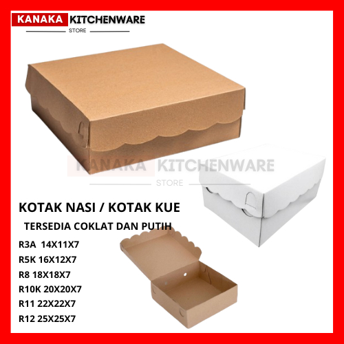 KOTAK PUTIH DAN COKLAT R3A / R5K / R8 / R10 / R11 / R12 / KOTAK KUE / KOTAK JAJAN / KOTAK HAMPERS / KOTAK CATHERING / BOX NASI KRAFT / BOX KE HANTARAN