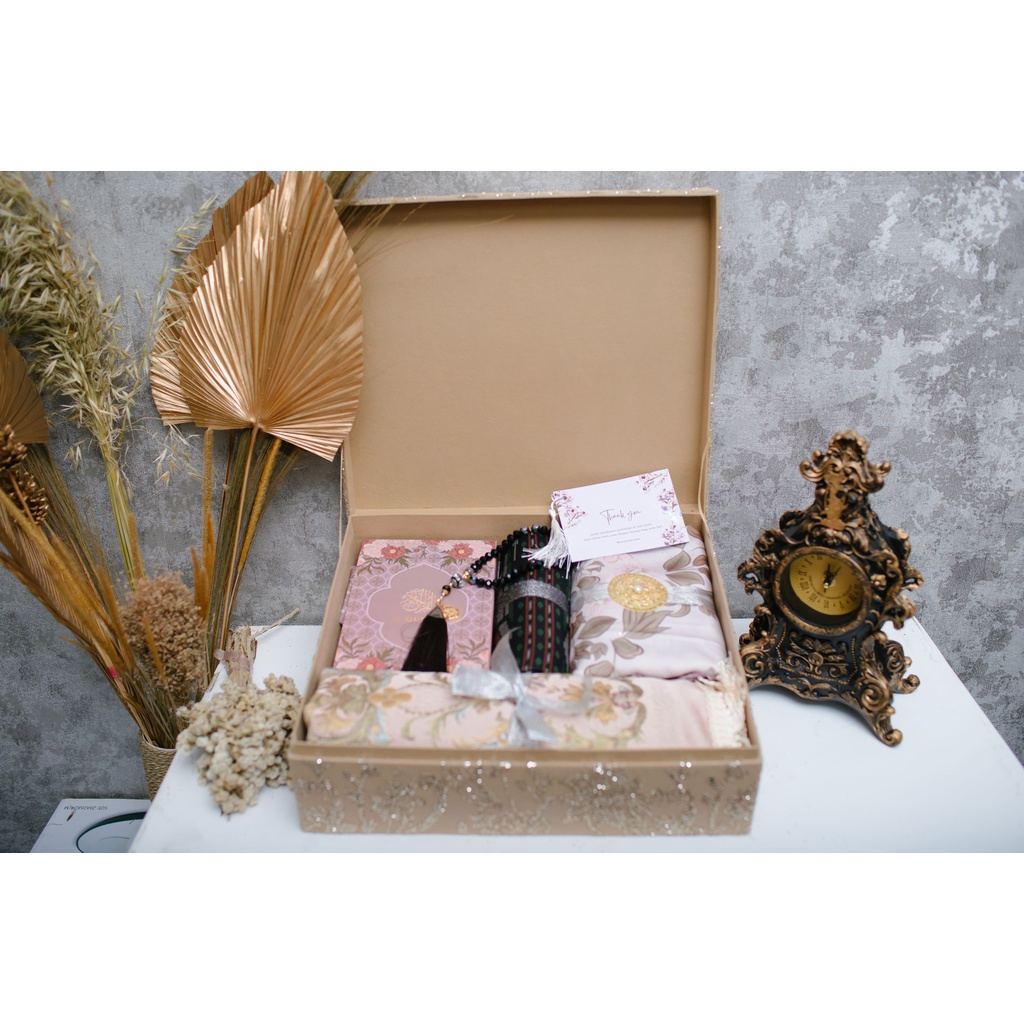 - PAKET KOTAK RENDA BLING BLING - H 37 : SJD AL SURMA, MUKENA ARMANY, ALQURAN BLUDRU, TASBIH CUSTOM,