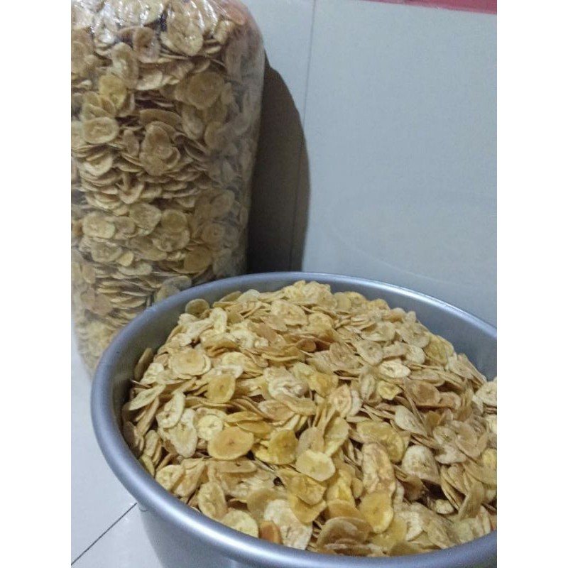 kripik pisang rasa original, pedas dan manis