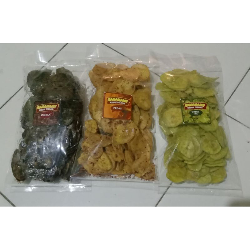 - kripik pisang terbuat dari pisang nangka, diolah menjadi berbagai macam varian rasa, dengan bahan-bahan yang berkualitas hingga menghasilkan rasa yang enak, gurih, renyah dan dijamin bikin nagih !