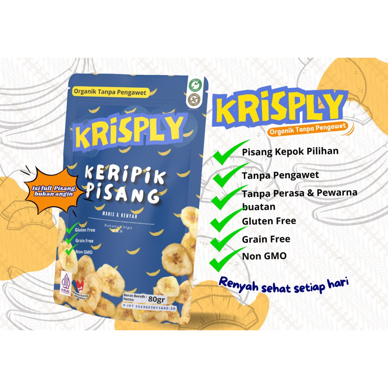 #krisply Keripik Pisang adalah cemilan sehat yang terbuat dari 100% bahan alami dengan tambahan sedikit gula.