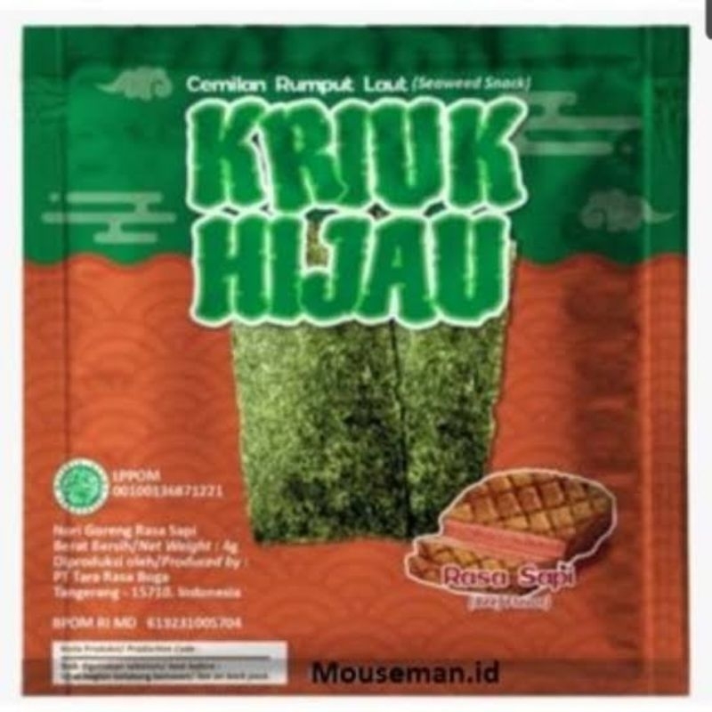 KRIUK HIJAU CAMILAN RUMPUT LAUT RASA SAPI 1 BOX ISI 12 SACHET