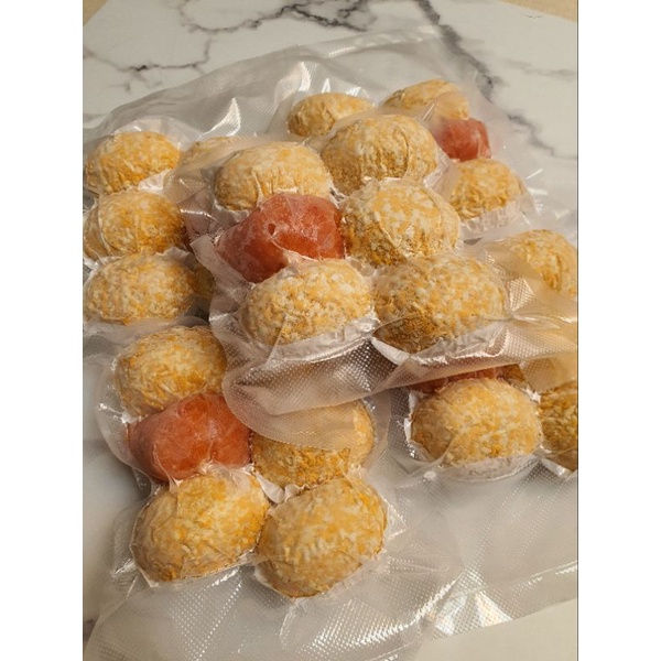 terbuat dari bahan pilihan dengan isian ayam, wortel, telur, jamur. dilengkapi dengan saos khas pedas manis.