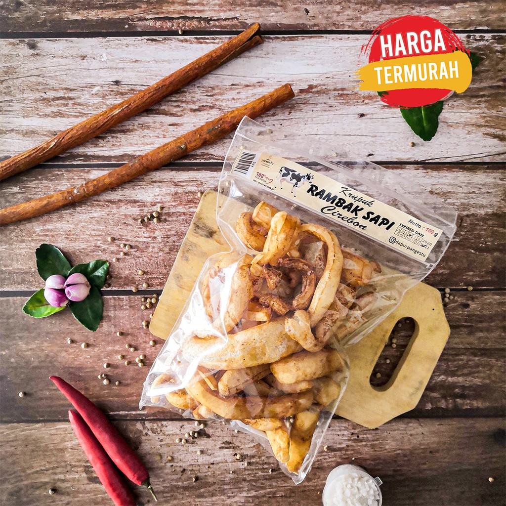 Krupuk rambak sapi terbuat dari kulit sapi pilihan.rasa asin gurih dan krupuk yang renyah sangat cocok dijadikan oleh-oleh dan cemilan bersama kerabat tercinta. Digoreng dengan menggunakan minyak baru 1x pakai, lalu dibumbui dengan bumbu rahasia khas Pangestu.