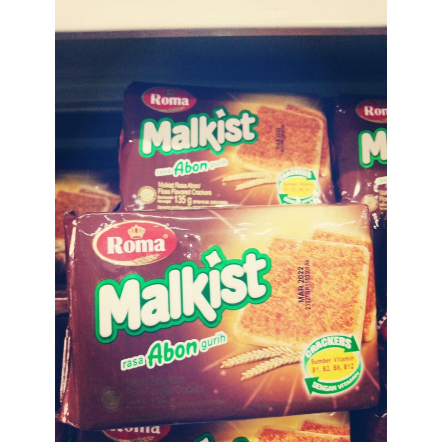 Roma malkist abon Merupakan biskuit krackers renyah yang dibuat dengan cara dipanggang. Rasanya yang enak, teksturnya yang renyah dan nutrisinya yang menyehatkan, membuat biskuit ini menjadi salah satu makanan favorit banyak orang. Dengan taburan perisa abon sapi yang lezat. Terbuat dari gandum, susu, dan komposisi lainnya yang diolah secara modern dan higienis untuk menghasilkan camilan sehat yang lezat dan nikmat. Juga mengandung Vitamin B1, B2, B6, dan B12 yang memberikan nutrisi dan energi yang mendukung Anda melakukan kegiatan sehari-hari.