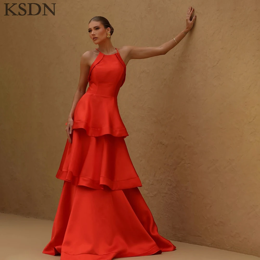 KSDN Роскошные вечерние платья с бретелькой на шее, модные платья без рукавов со шлейфом и открытой спиной, многоуровневые платья для особых случаев, шикарное женское платье