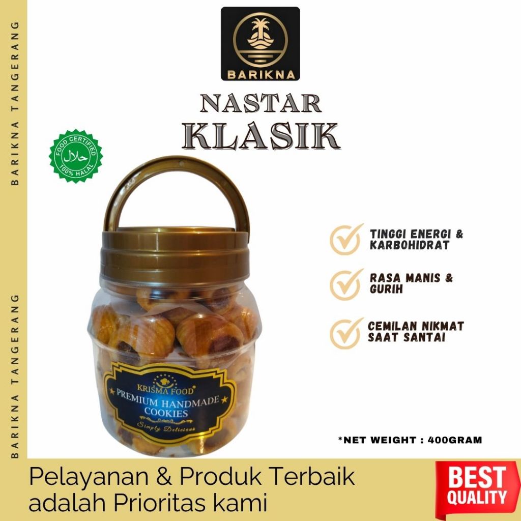 Nastar Klasik adalah kue kering berbentuk bulat yang diisi selai nanas dan diproduksi oleh merek Krisma Food. Kue ini memiliki tekstur renyah di luar dan lembut di dalam
