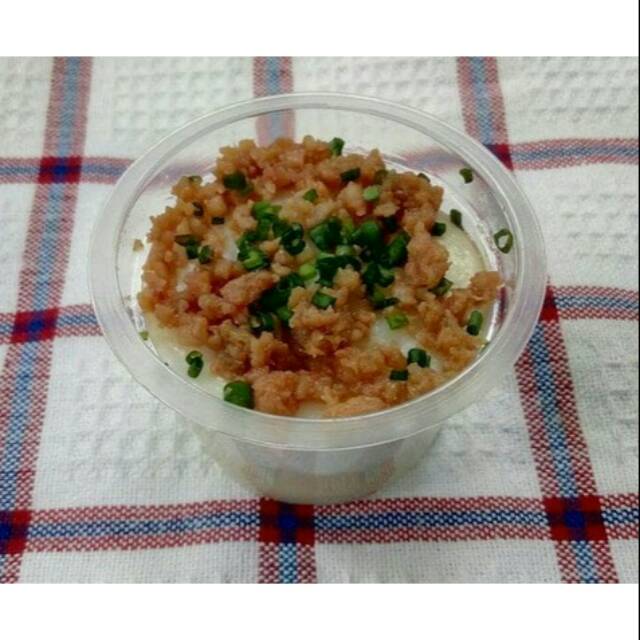 Kue Ini memiliki topping bumbu udang cincang dan ditaburi dengan daun bawang.