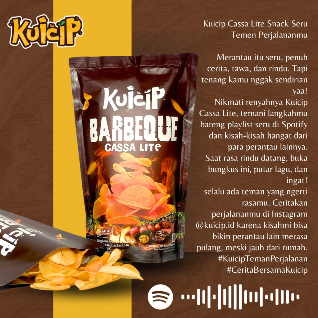 Nikmati sensasi camilan sehat dan lezat dengan Kuicip Cassa Lite! Dibuat dari bahan pilihan berkualitas, Kuicip Cassa Lite adalah perpaduan sempurna antara kerenyahan dan rasa yang memanjakan lidah. Cocok dinikmati kapan saja saat santai, bekerja, atau kumpul bersama teman.