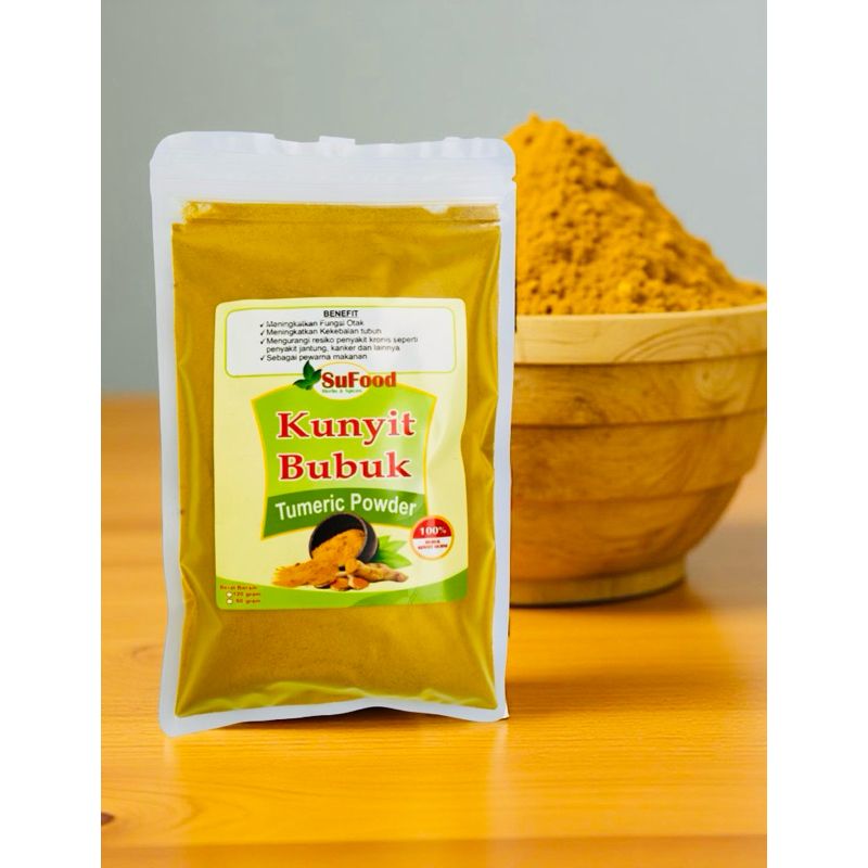 Kunyit Bubuk Terbuat dari 100% Kunyit murni tanpa bahan campuran.