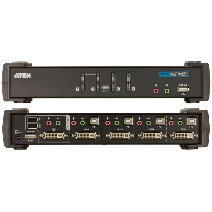 KVM-переключатель ATEN CS1764A, 4-порта USB 2.0 DVI (CS1764A-AT-G), CS1764A