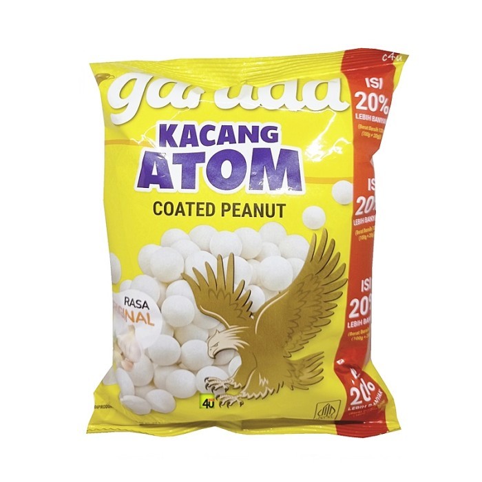 Garuda Kacang Atom Original merupakan kacang atom yang nikmat, gurih dan renyah persembahan dari garuda. garuda Kacang Atom terbuat dari bahan-bahan berkualitas dengan bahan utama kacang yang terbuat dari kacang pilihan yang berkualitas tinggi agar kerenyahan dan kenikmatan yang dihasilkan lebih terasa.