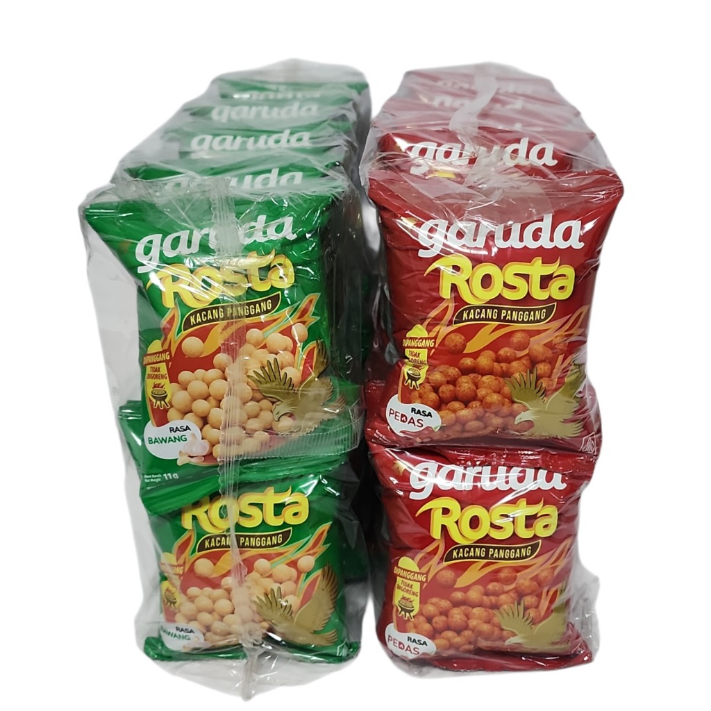 ROSTA adalah kacang panggang persembahan Garuda Food. Kacang Garuda ini dihasilkan dari kacang tanah pilihan yang garing dan padat kemudian dibalut oleh tepung terigu dan dipanggang dengan minyak nabati yang sehat, tidak digoreng. Dijual per pack isi 20 bungkus per renceng dengan netto 12 gram per bungkusnya,