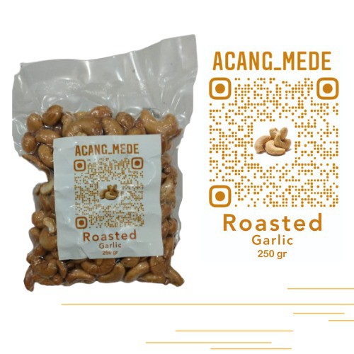 Kacang mede merupakan makanan favorite semua orang. Kacang mede kami berasal dari Sulawesi yang merupakan salah satu penghasil mede terbaik di dunia. Yang diolah dengan cara dipanggang serta dikemas dengan rapi dan divacum agar tetap gurih dan renyah karena diproses tanpa menggunakan bahan pengawet. Kacang mede Rasa Garlic mempunyai perpaduan rasa bawang dengan sedikit garam sehingga membuat kacang mede menjadi lebih enak dan gurih.