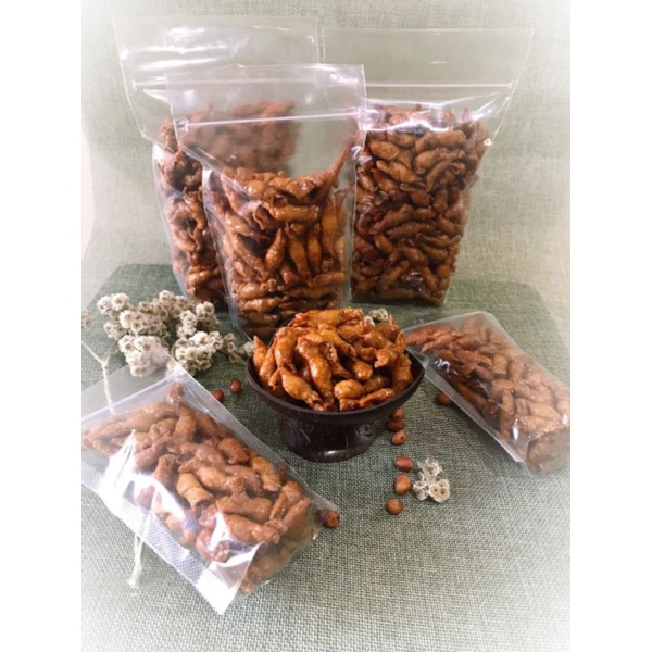 Kacang sembunyi terbuat dari kacang tanah pilihan. Dibungkus dengan kulit lumpia yang dibuat sendiri.