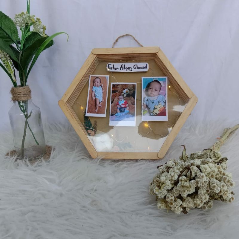 Frame foto hexagonal dengan lampu