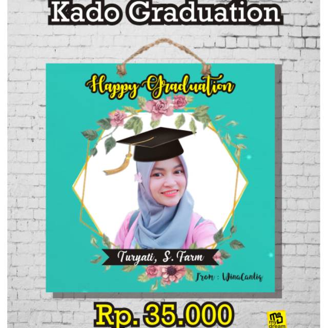 Bahan ap dilaminasi dan ditempel pada multiplek, murah dan bagus untuk kado graduation atau ulang tahun.