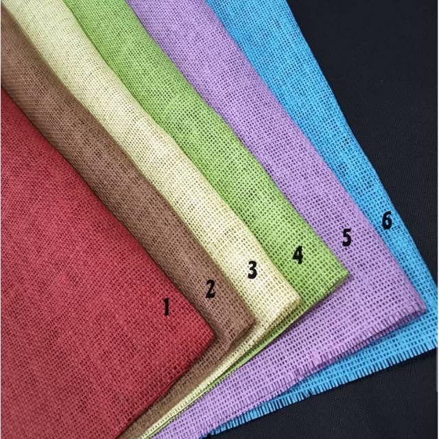 Kain Raffia ini mirip dengan kain jute, berbentuk lembaran bahan agak tegang