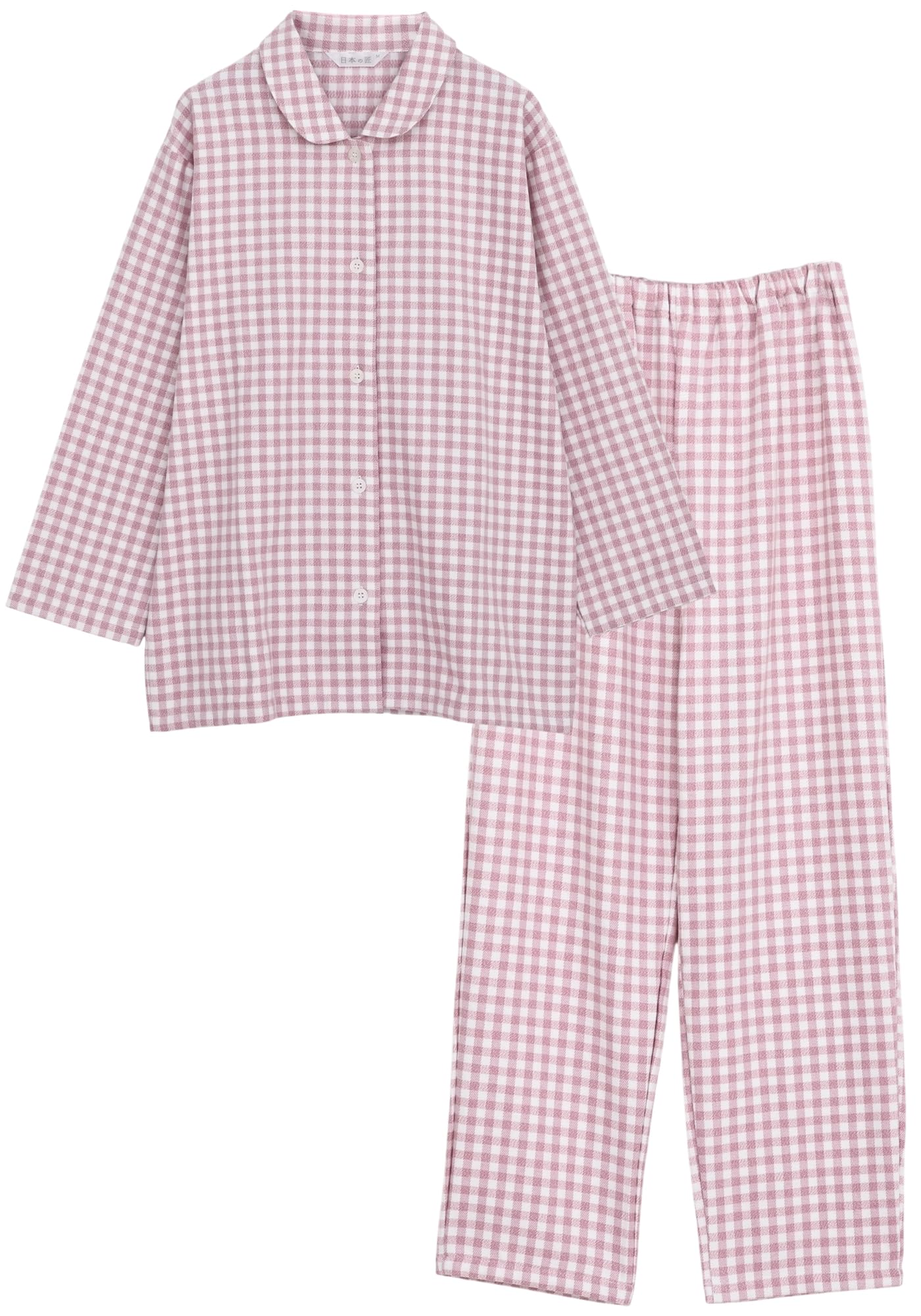 Kaitak Сделано в Японии Японская Хлопковая Рубашка-Одеяло Длинная Клетка L Розовая Клетка Семейные Мастера, Женская Пижама, Рукав, 100% Хлопок, Узор,