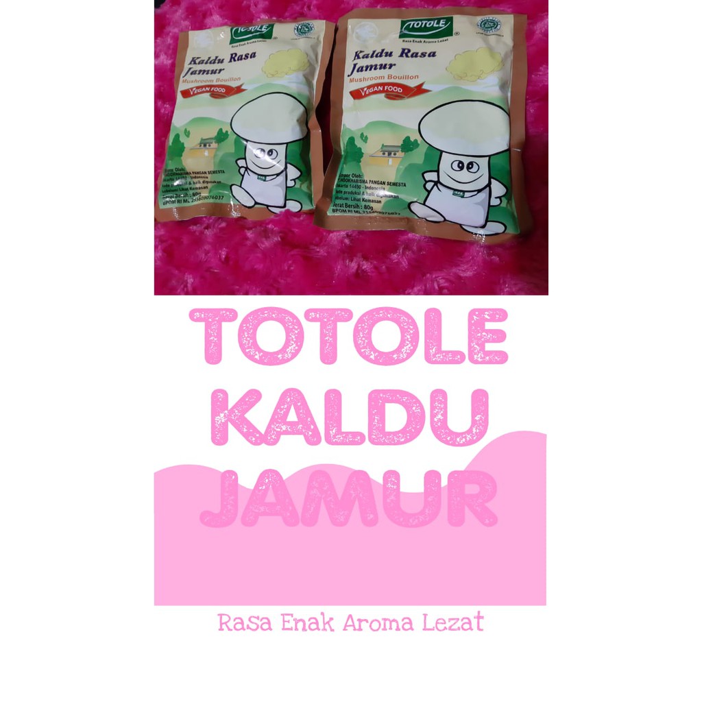 Kaldu Kaldu Jamur TOTOLE berbahan baku jamur, sehingga sehat alami tanpa kandungan bahan kimia berbahaya bagi tubuh. Kaldu jamur TOTOLE berbentuk serbuk untuk membuat masakan anda menjadi lebih lezat dan sehat, sehingga aman untuk buah hati anda. Telah terbukti & disukai oleh ibu rumah tangga & para ahli masak.