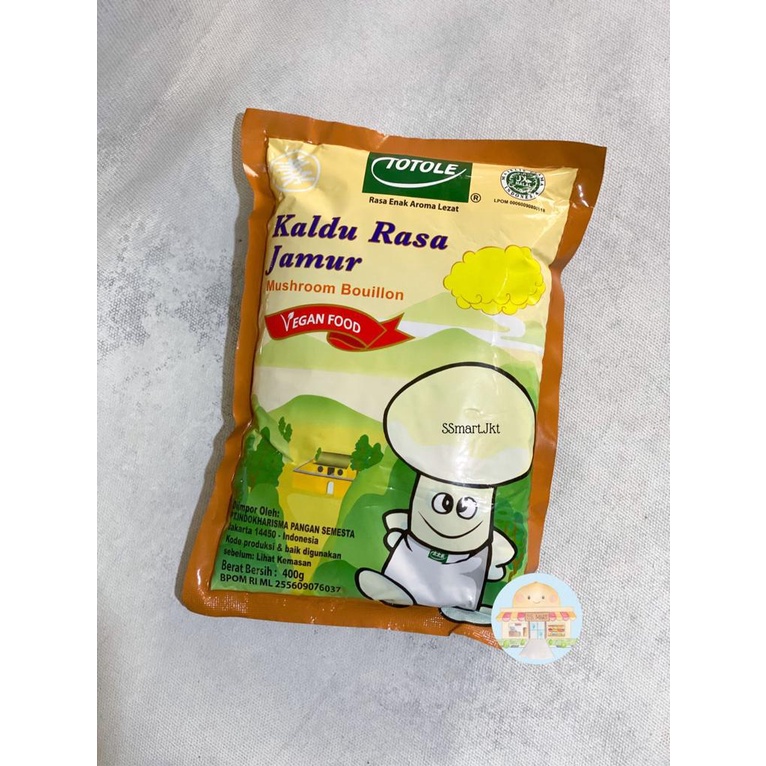 Kaldu Jamur TOTOLE adalah bumbu memasak bubuk yang terbuat dari jamur, yang telah memiliki label HALAL MUI. Totole cocok digunakan untuk membuat makanan tumis, kukus, sup atau kuah yang anda inginkan menjadi lebih nikmat untuk di makan bersama keluarga. dan juga untuk makanan vegetarian dan halal karena 100% berbahan jamur, dan sudah tentu aman dikonsumsi oleh semuanya. Simpan di tempat kering / sejuk dan tidak langsung terkena sinar matahari.