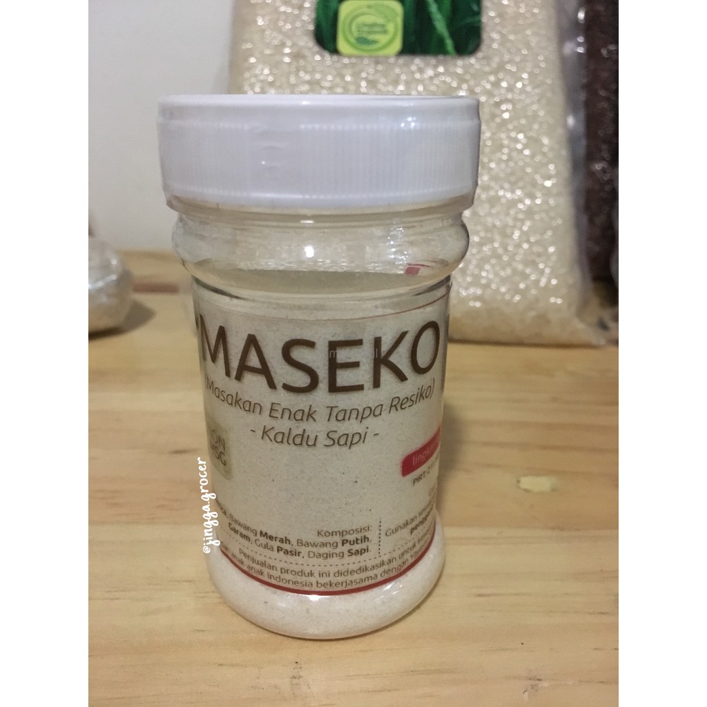Maseko (Masakan Enak Bebas Resiko) dibuat dari bahan-bahan alami, bebas MSG (sudah dilakukan pengujian laboratorium). Digunakan sebagai pengganti vetsin/penyedap rasa, dengan takaran sesuai selera.