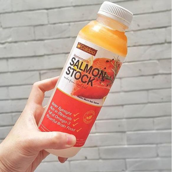 Kaldu salmon murni dari ikan salmon dan tulangnya yang direbus dengan teknik presto. Bebas MSG, garam, pengawet dan pewarna. Harum dan tidak amis.