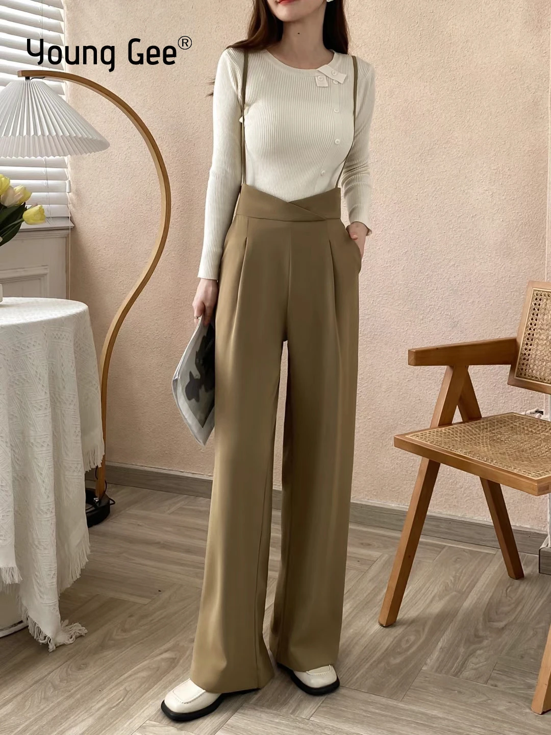 Young Gee Overalls Black Pants Women's Chiffon Streetwear Baggy Braces Pants Vintage Wide Leg Long Suit Ginger Trousers Rompers