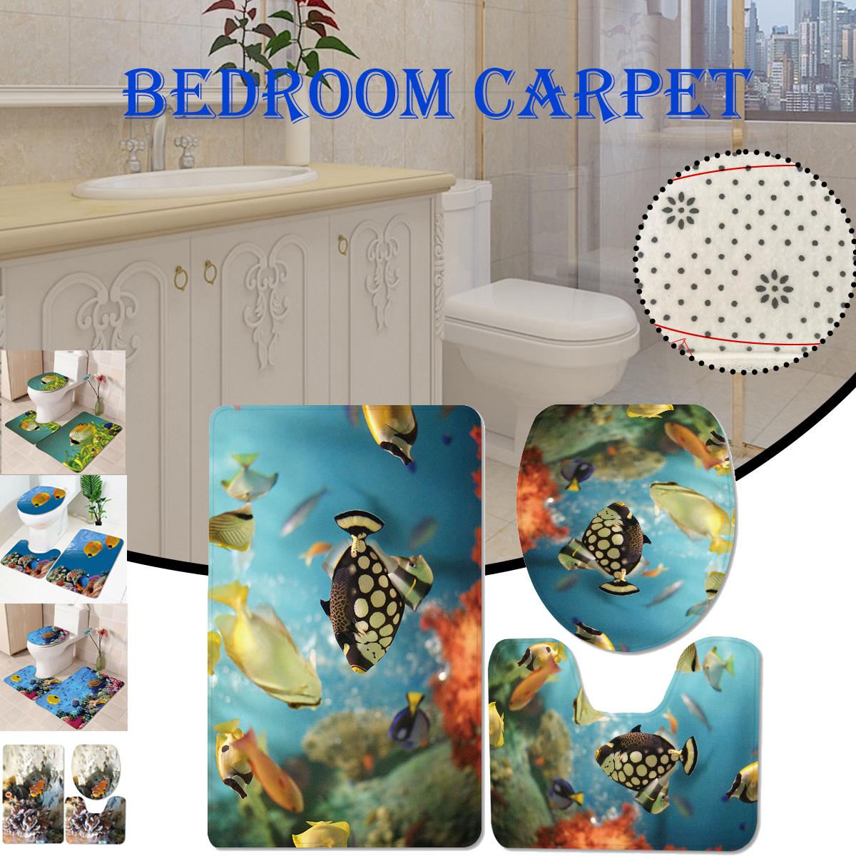 Kali 3PCS Ванная комната Нескользящий коврик в океанском стиле Крышка для унитаза + Набор ковриков для ванной