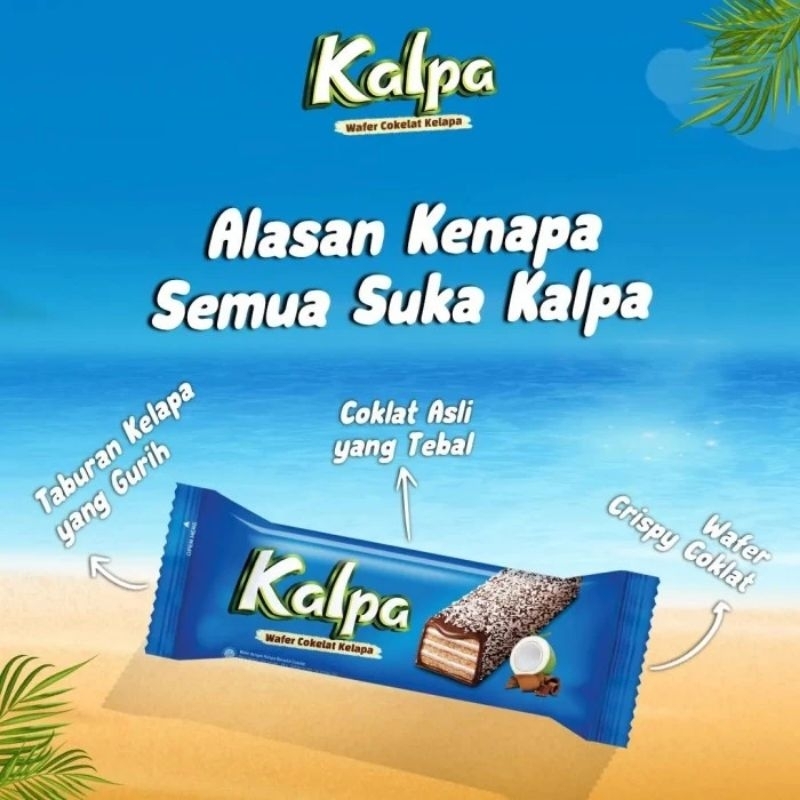 Kalpa wafer coklat kelapa dengan kombinasi wafer renyah dibalut dengan cokelat yang tebal dan ditaburi dengan parutan kelapa asli yang gurih dan banyak yang enaknya luar biasa dan bikin ketagihan.