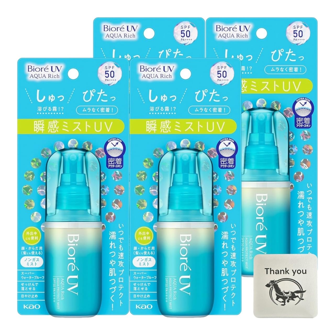 Kao Biore UV Солнцезащитный крем Aquarich Aqua Protect Мист 60 мл Набор из 4 штук Kunutonn Оригинальный логотип Бонус Смываемый мылом +