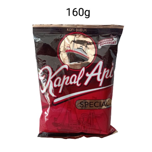 Kopi Kapal Api Special 160gr kopi bubuk dari biji kopi pilihan,kopi kapal api ciptakan kopi yang lebih enak.Cukup untuk 25 cangkir