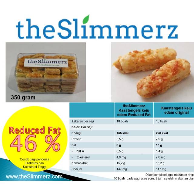 Kue kering "kastengel" dari the Slimmerz tentu memiliki rasa yang unik dan menggunakan bahan-bahan berkualitas. Selain itu cookies ini berbeda dengan cookies pada umumnya karena kalori serta kandungan" lain di dalam nya sudah di atur.