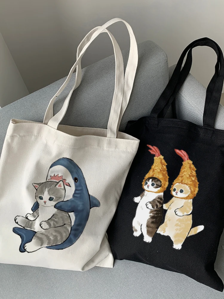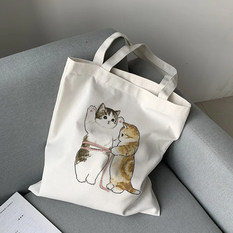 Kawaii школьная сумка, Холщовая сумка, Повседневная Большая вместительная сумка с милым мультяшным котом, сумка, Милая женская сумка через пле...