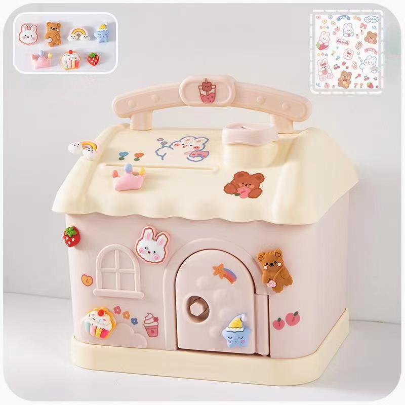 Kawaii House Копилка для банкнот, держатель для монет, сейф, большой размер, милая копилка, сбережения с ключом для детей, взрослых, подарок на день рождения розовый