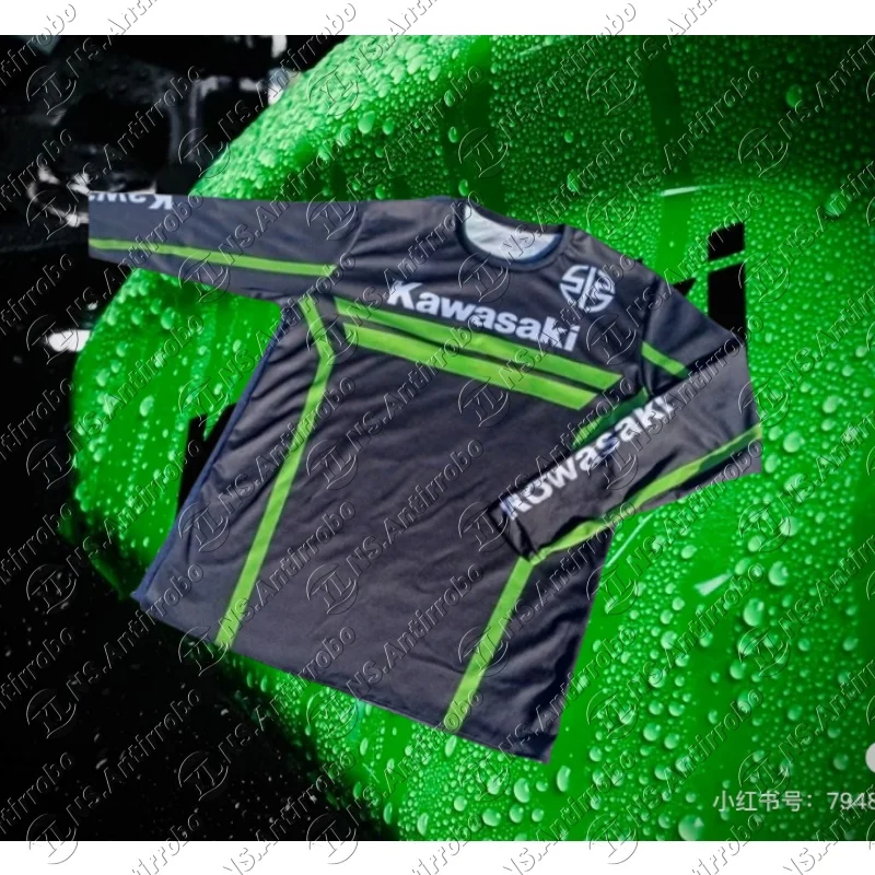 Kawasaki зеленая новая одежда для езды на мотоцикле, летняя мужская и женская очень большая дышащая скоростная сушка, спортивная футболка с длинным рукавом