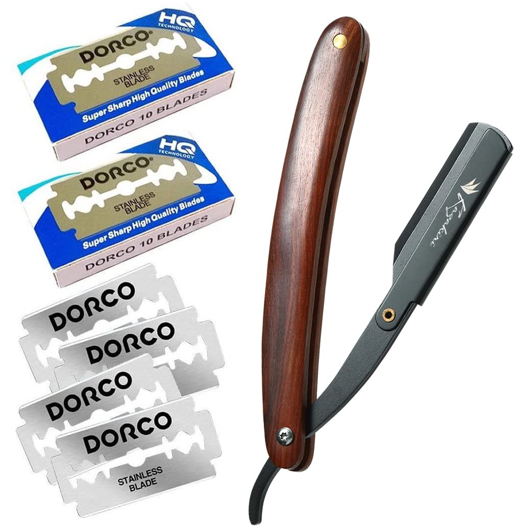 Kazakiri Holz Бритва с деревянной ручкой для впечатляюще гладкого бритья от профессиональной бритвы для бритья лица с 40 сменными лезвиями Западная бритва для мужчин