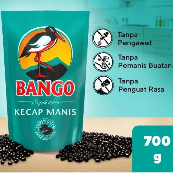 Bango Kecap Manis merupakan kecap manis yang terbuat dari bahan alami pilihan seperti kedelai hitam berkualitas, gula Bango dibuat sepenuh hati dari